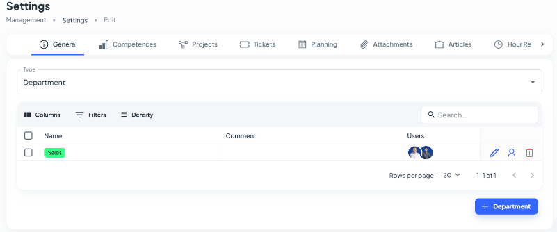 π Settings: Departments have now been added! You can create departments in the settings and select which users belong to said departments. The following integrations in other modules are now available: