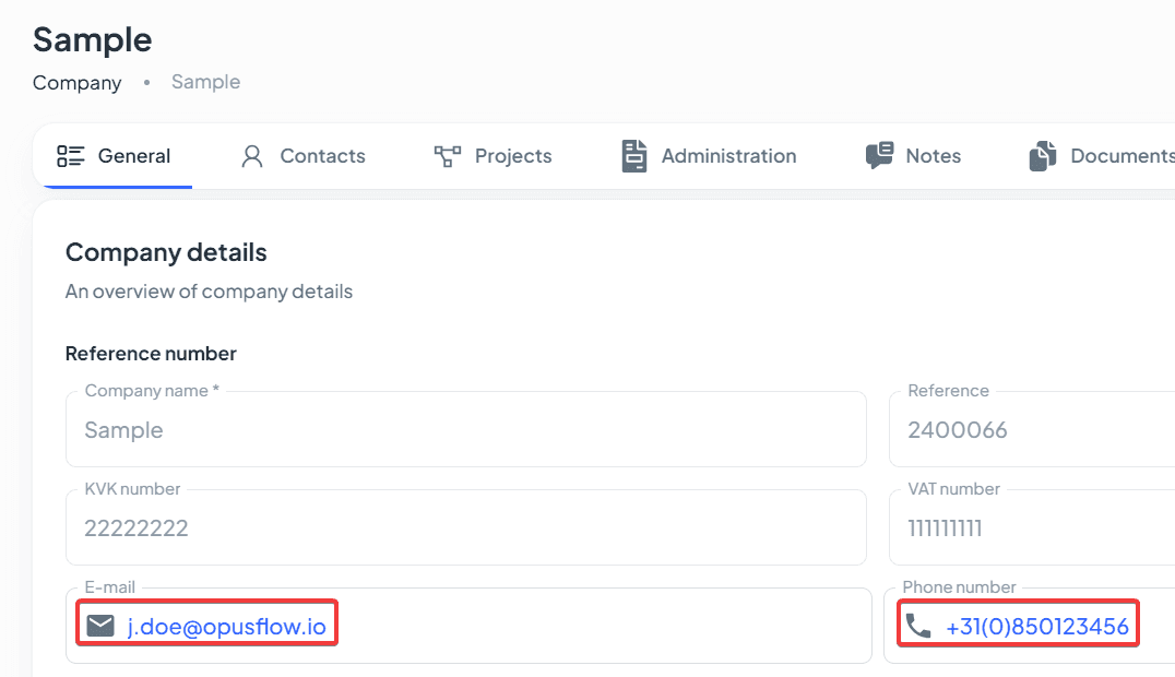 🌟 Added several new clickable e-mail fields and phone numbers in CRM.