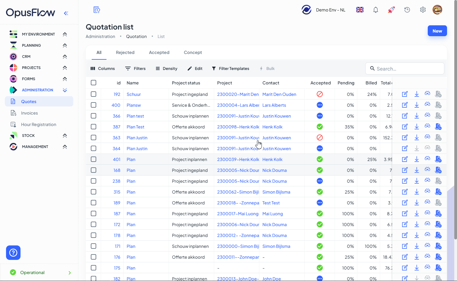๐ Quotes: Added new mailing capabilities within OpusFlow. You can also make use of Email templates for this, which you can create in Management โ Templates โ E-Mail.