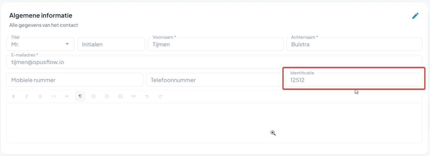 š Added a new identification field for you to use however you prefer. Permissions can be set on this field to ensure the necessary authorization and the values can be retrieved on in PDF-Templates using: {{ project.contact.identification }}