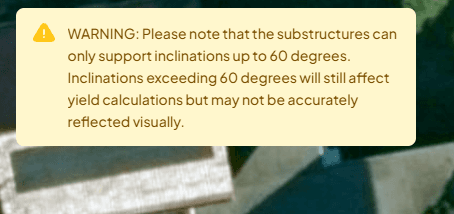 ๐ Solar panels now support inclinations of 90ยฐ, for example with panels attached vertically to walls of a frontage. Doing so, will show the following warning: