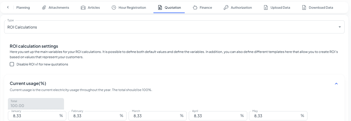 š Settings > Quotation tab: Added the ability to disable the basic version of ROI in the settings. š Templates > PDF templates: Added a lot of shortcodes for the advanced version of ROI: