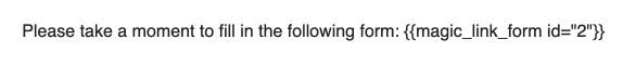 The email placeholder allows specifying the form template that is used when generating the Magic Link: