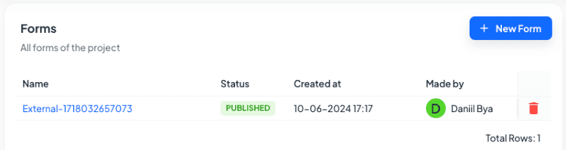 The filled form can then be found in the "Forms" tab of the project.